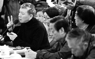 接過馮驥才委員的話,攜手馮小剛提出提案的張國立補充說:“為什麼我們有這樣的想法,習主席說要講好中國故事,傳播中國文字之美,但我們首先要明白文字中的文化含義。”攝影/本報記者 崔峻