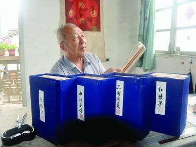 说干就干,他先用油光纸开始抄写《三国演义》,写到十几回发觉不行,油光纸不宜长期保存,又用宣纸重写。市场上的毛笔都是“大路货”,不能用。他专程去苏州、上海都没买到理想的毛笔,后来从安徽泾县某笔厂买来小楷狼毫,这下终于满意了。