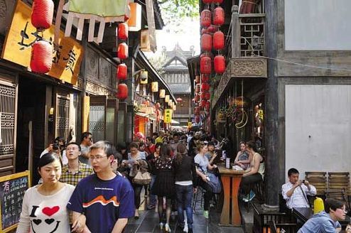 锦里号称“西蜀第一街”,由武侯祠博物馆恢复修建而成,是成都著名的商业步行街。在此游逛,可见清末民初建筑风格的仿古建筑布局严谨,而现代风格的酒吧区、小吃区、府第客栈区更是错落有致,别有时空交错之趣。