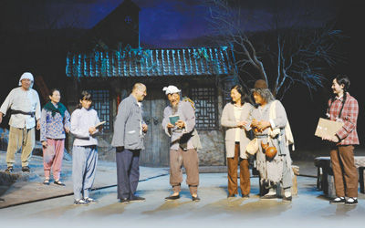 《柳青》的时代魅力,还体现在它充分展现了现实主义的实践品格。现实主义实践品格决定了它是开放的、与时俱进的。与之前塑造英模人物的许多戏剧作品相比,《柳青》无论在剧本创作、导演手法、舞台美术乃至音乐设计方面都呈现出难得的新意。就剧本而言,《创业史》里的人物和故事与皇甫村里的人物和故事、作家柳青与舞台形象柳青奇妙地交融在一起,叙述方式的创新形成了强大的戏剧张力。更为难能可贵的是,这样的艺术匠心,有时甚至以生活流的状态呈现出来,令整部话剧既有生活的质感,又充满了艺术加工的“肌理感”。导演傅勇凡说:“在普通人的印象中,农民的生活总是充满艰辛,但我想要告诉大家的是农民也有他们的快乐。他们的生活可能困窘,但他们不缺乏真心真性真情。农民同样有他们的爱恋、他们的讲规矩与好面子,这就是我理解的现实主义。”秉持这样的理念,傅勇凡为这部具有浓郁地方色彩的现实主义话剧增添了一抹理想的灵动色彩,即便舞台上的柳青可能让熟悉他的人感到些许距离,但这个更具亲和力的人民作家形象或许更容易走入今天普通观众内心,引发他们的情感共鸣。