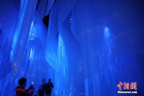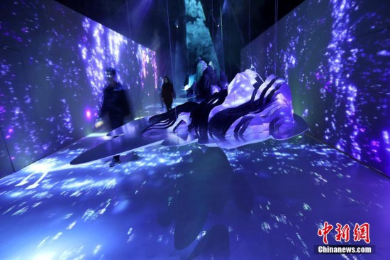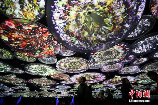 4月11日,如梦似幻的“瑰丽·犹在境”沉浸式数字意境全球首展在南京德基美术馆展出,吸引众多市民、游客前来观展。据了解,本次主展是从《千里江山图》、《洛神赋图》和《百花图卷》 三幅古画中选取“意象”元素,注入现代美学语言,通过装置、互动、演绎等交互,立体地呈现画作中繁多的情景与情感。中新社记者 泱波 摄